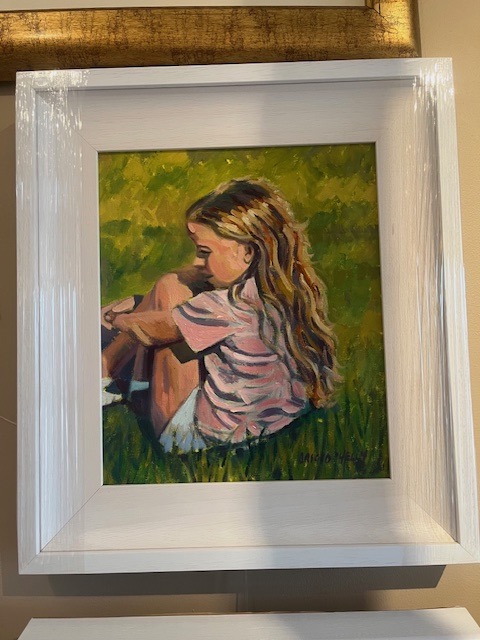 Original Painting painted in oils on a 20cm x 25cm canvas professionally framed with an off white inner frame and a white outer frame.